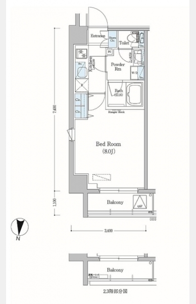 | 間取り | 1K | 専有面積 | 25.16m² | ||
