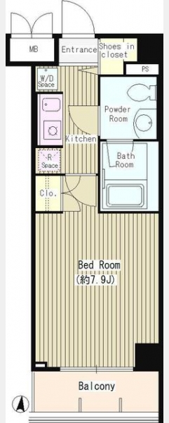 間取り | 1K | 専有面積 | 25.53m² | ||