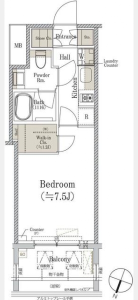| 間取り | 1K | 専有面積 | 25.35m² | ||