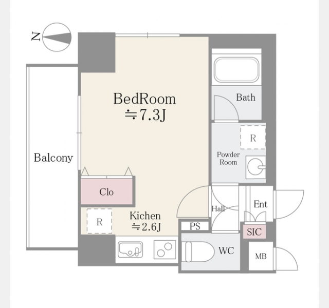 | 間取り | 1K | 専有面積 | 26.01m² | ||