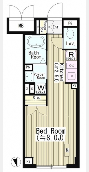 | 間取り | 1K | 専有面積 | 25.72m² | ||