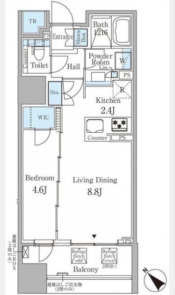 | 敷金/保証金 | 1ヶ月/- | 礼金/償却・敷引 | 1.75ヶ月/- | ||