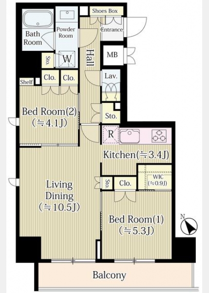 | 間取り | 2LDK | 専有面積 | 57.34m² | ||