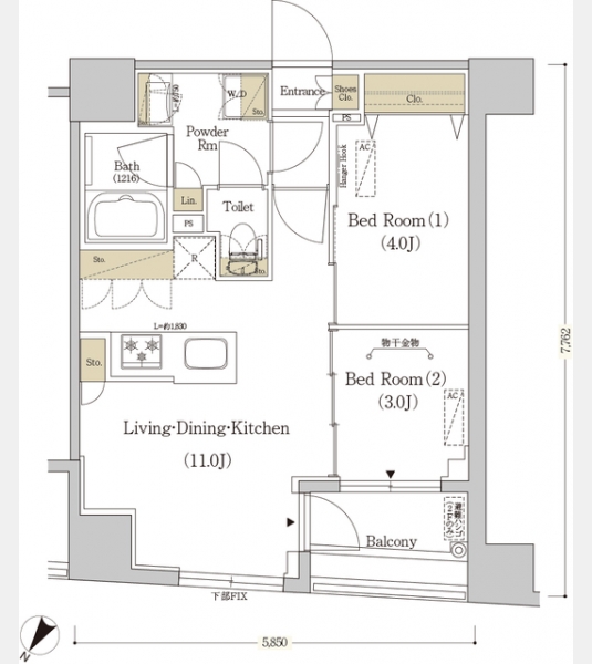 | 間取り | 2LDK | 専有面積 | 40.57m² | ||
