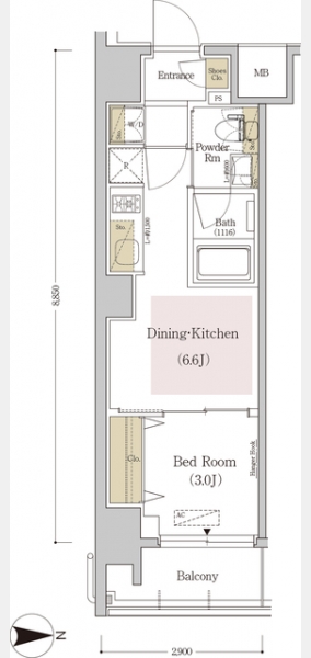 | 間取り | 1DK | 専有面積 | 25.21m² | ||