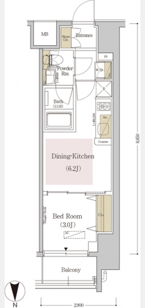 | 間取り | 1DK | 専有面積 | 25.08m² | ||