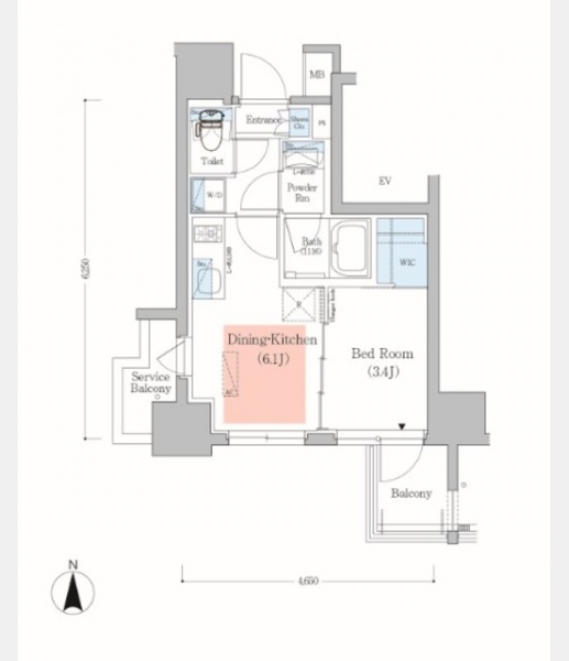 | 間取り | 1DK | 専有面積 | 25.46m² | ||