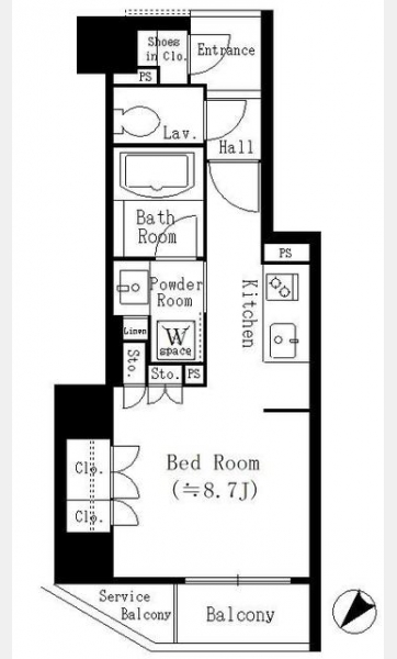 | 間取り | 1R | 専有面積 | 26.63m² | ||