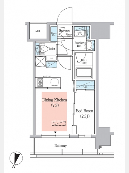 | 間取り | 1DK | 専有面積 | 25.52m² | ||