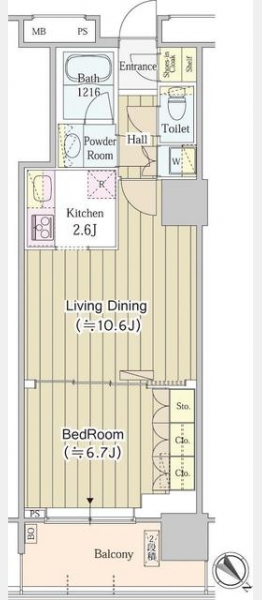 | 間取り | 1LDK | 専有面積 | 46.07m² | ||