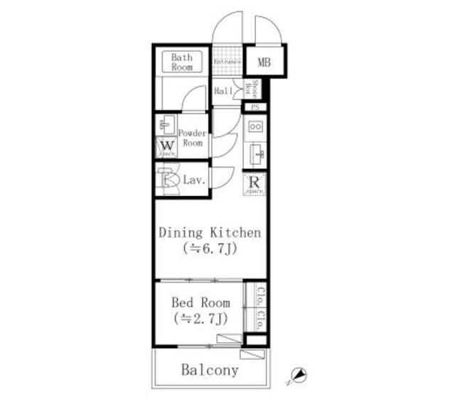 | 間取り | 1DK | 専有面積 | 25.33m² | ||