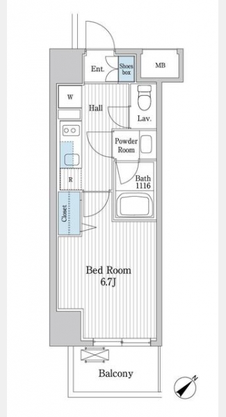| 間取り | 1K | 専有面積 | 25.20m² | ||