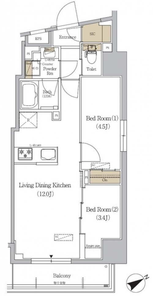 2LDK 44.03m² |