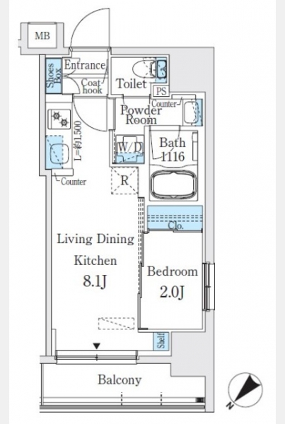 | 間取り | 1LDK | 専有面積 | 25.96m² | ||