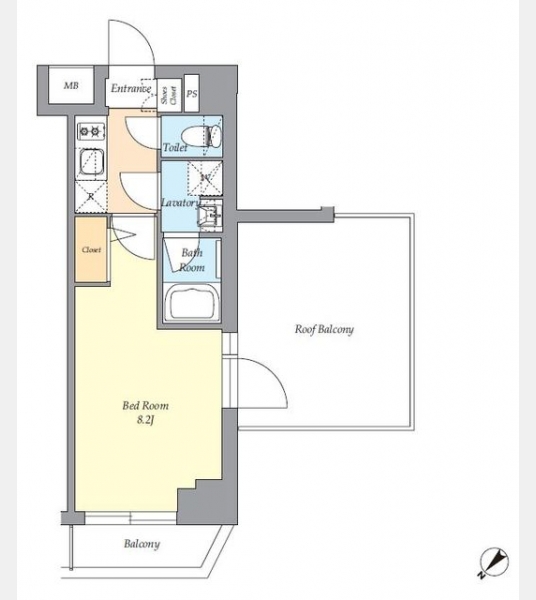 | 間取り | 1K | 専有面積 | 25.20m² | ||
