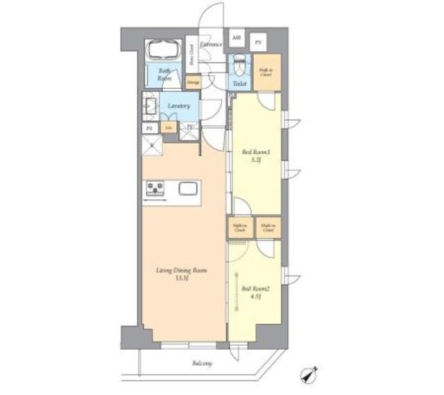 | 間取り | 2LDK | 専有面積 | 54.00m² | ||