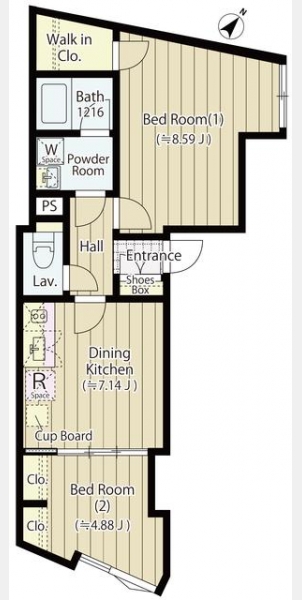 | 間取り | 2DK | 専有面積 | 47.38m² | ||