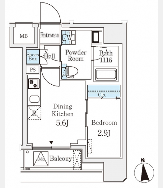 | 間取り | 1DK | 専有面積 | 25.13m² | ||