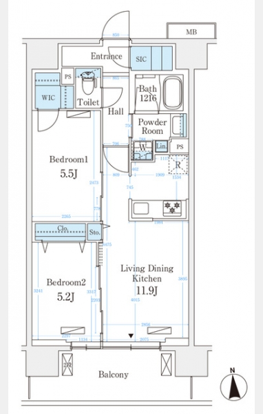 | 間取り | 2LDK | 専有面積 | 54.97m² | ||