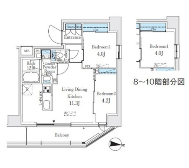 | 間取り | 2LDK | 専有面積 | 43.74m² | ||