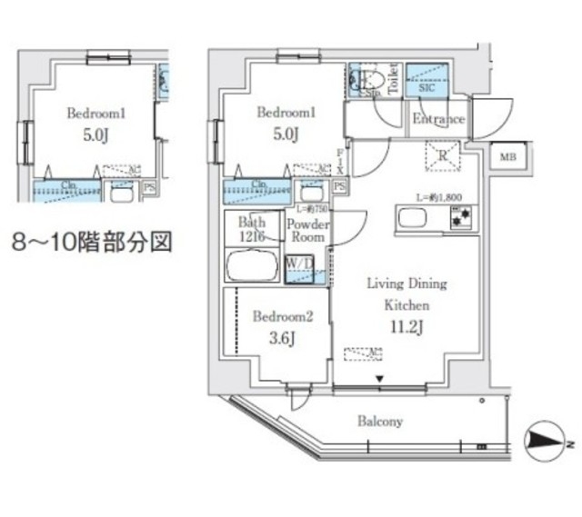 | 間取り | 2LDK | 専有面積 | 43.59m² | ||
