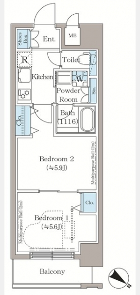 | 間取り | 2K | 専有面積 | 34.23m² | ||
