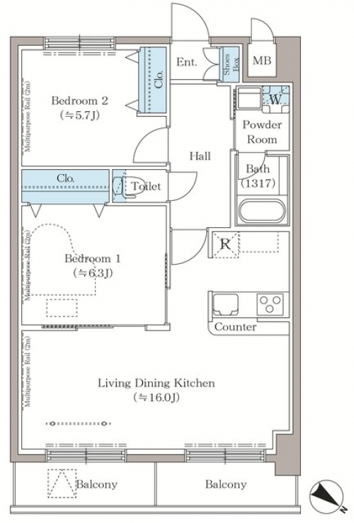 2LDK 57.03m² |