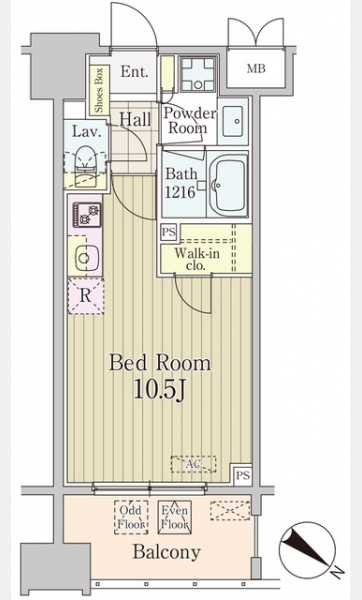 | 間取り | 1R | 専有面積 | 28.80m² | ||