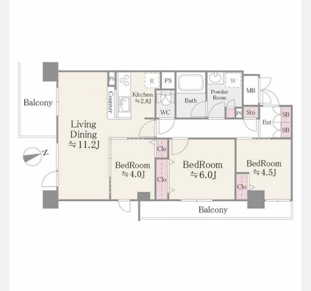 | 間取り | 3LDK | 専有面積 | 66.22m² | ||