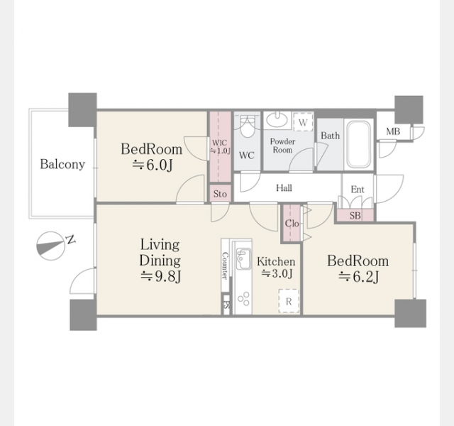 | 間取り | 2LDK | 専有面積 | 56.57m² | ||