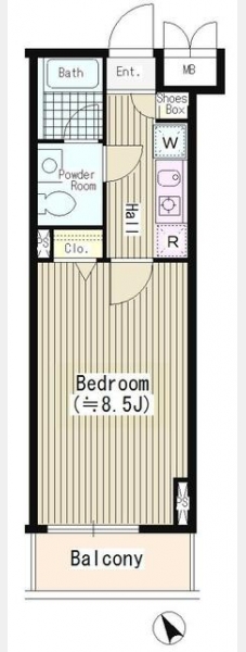 | 間取り | 1K | 専有面積 | 25.03m² | ||