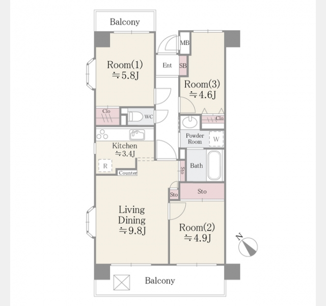 | 間取り | 3LDK | 専有面積 | 68.34m² | ||