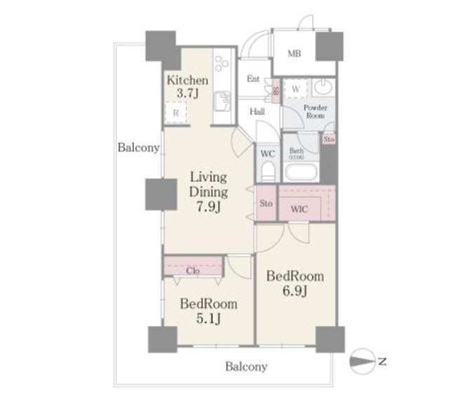 間取り | 2DK | 専有面積 | 55.17m² | ||