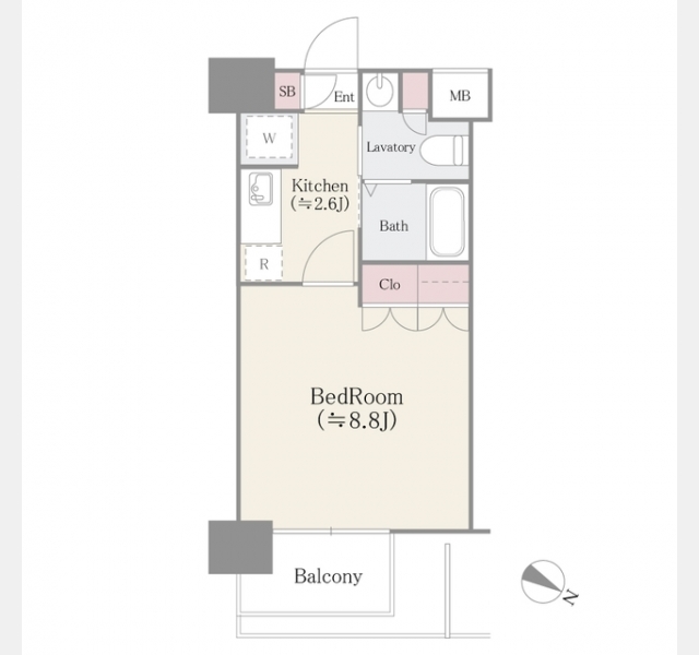 | 間取り | 1K | 専有面積 | 26.73m² | ||